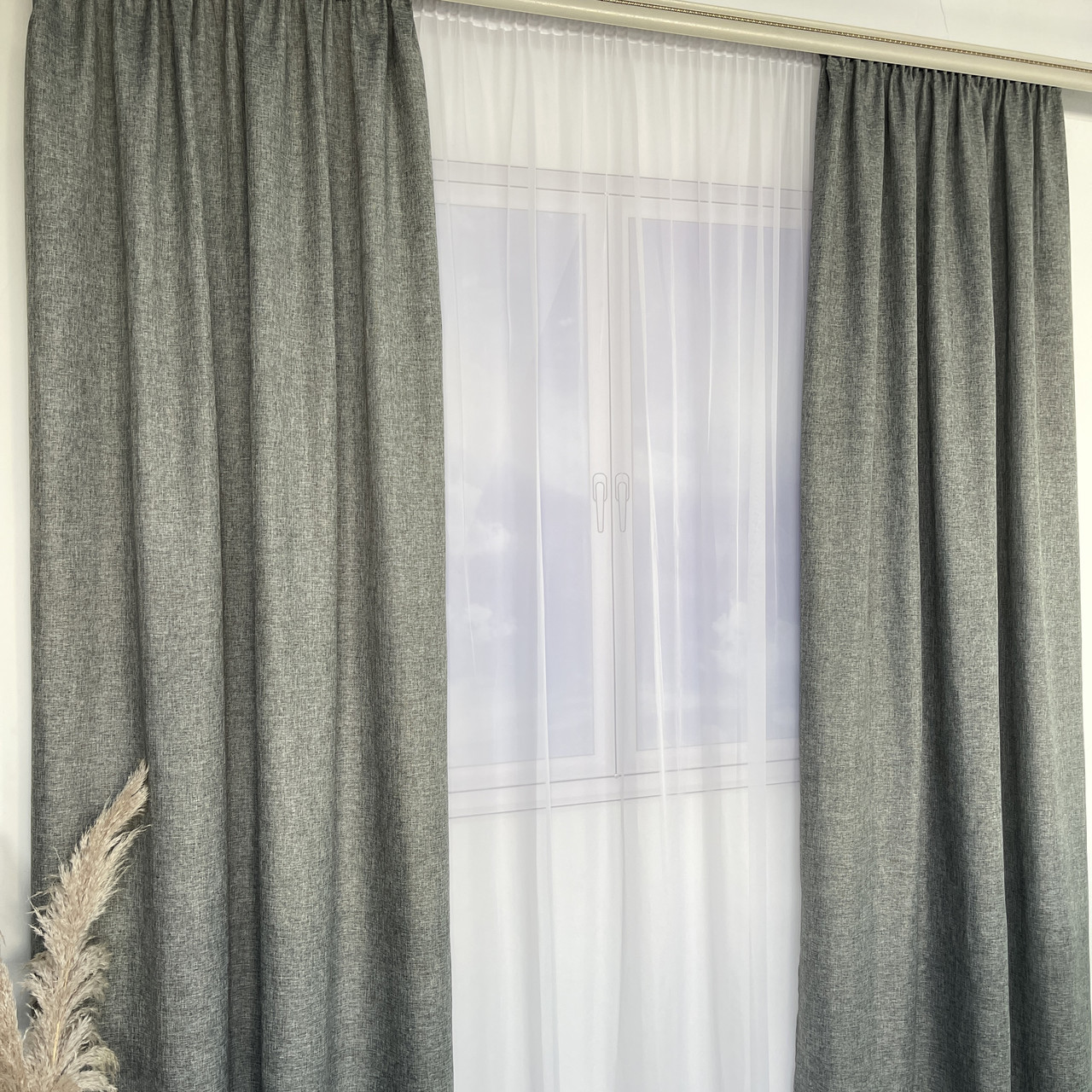 Легкі лляні штори графітові кольору, комплект 2 шт.